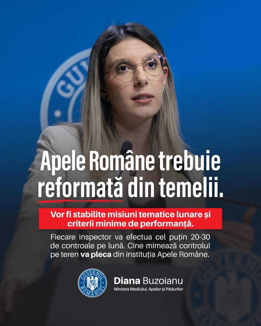 Ministra Buzoianu a afirmat că protecția resursei de apă nu se poate realiza doar prin birou, iar reforma ANAR va începe imediat. Aceasta a subliniat importanța realizării unor controale reale și a luării de măsuri împotriva poluatorilor. „Cine mimează controlul pe teren va pleca din instituția Apele Române”, a concluzionat ministra.